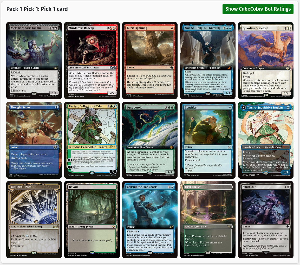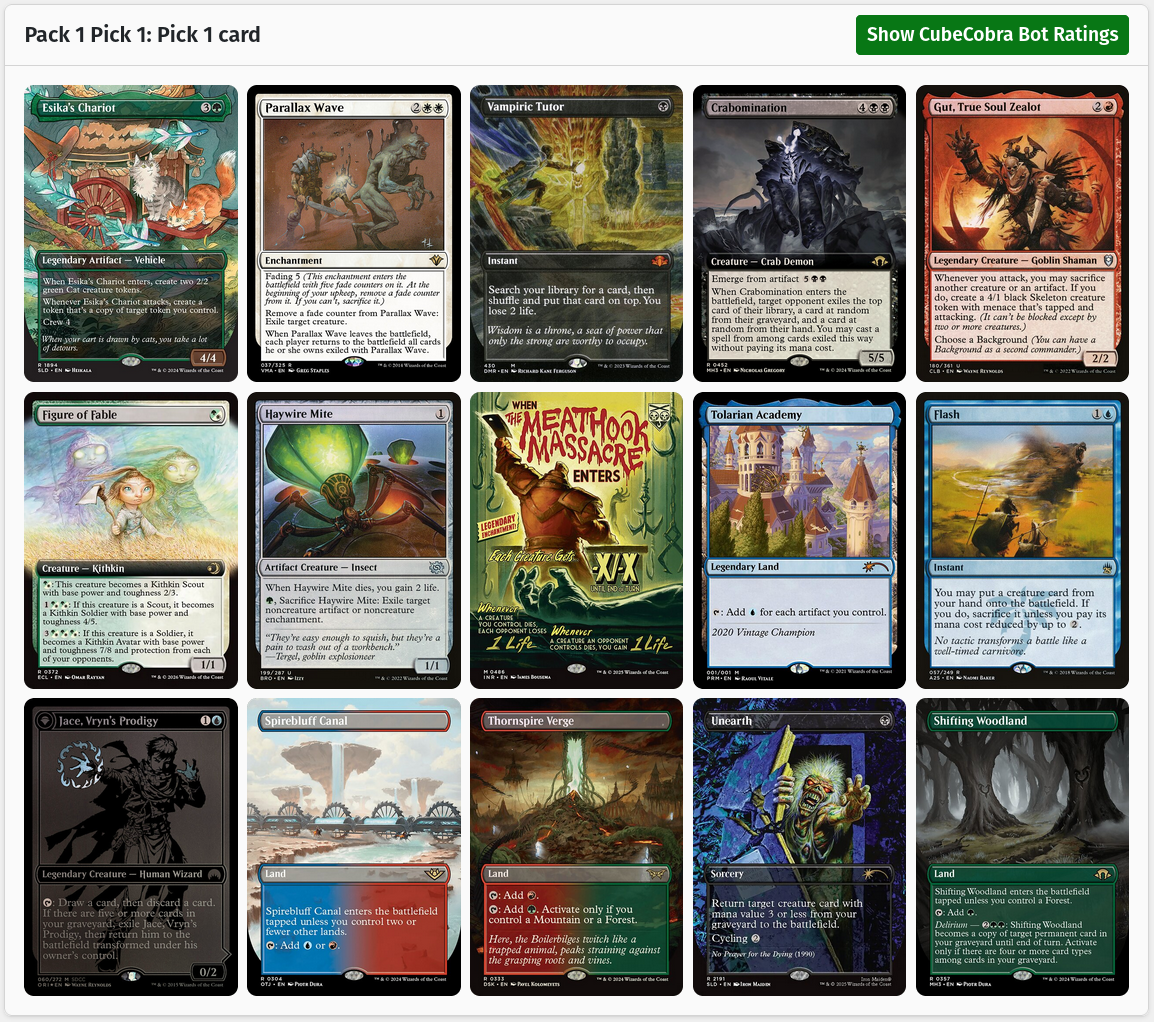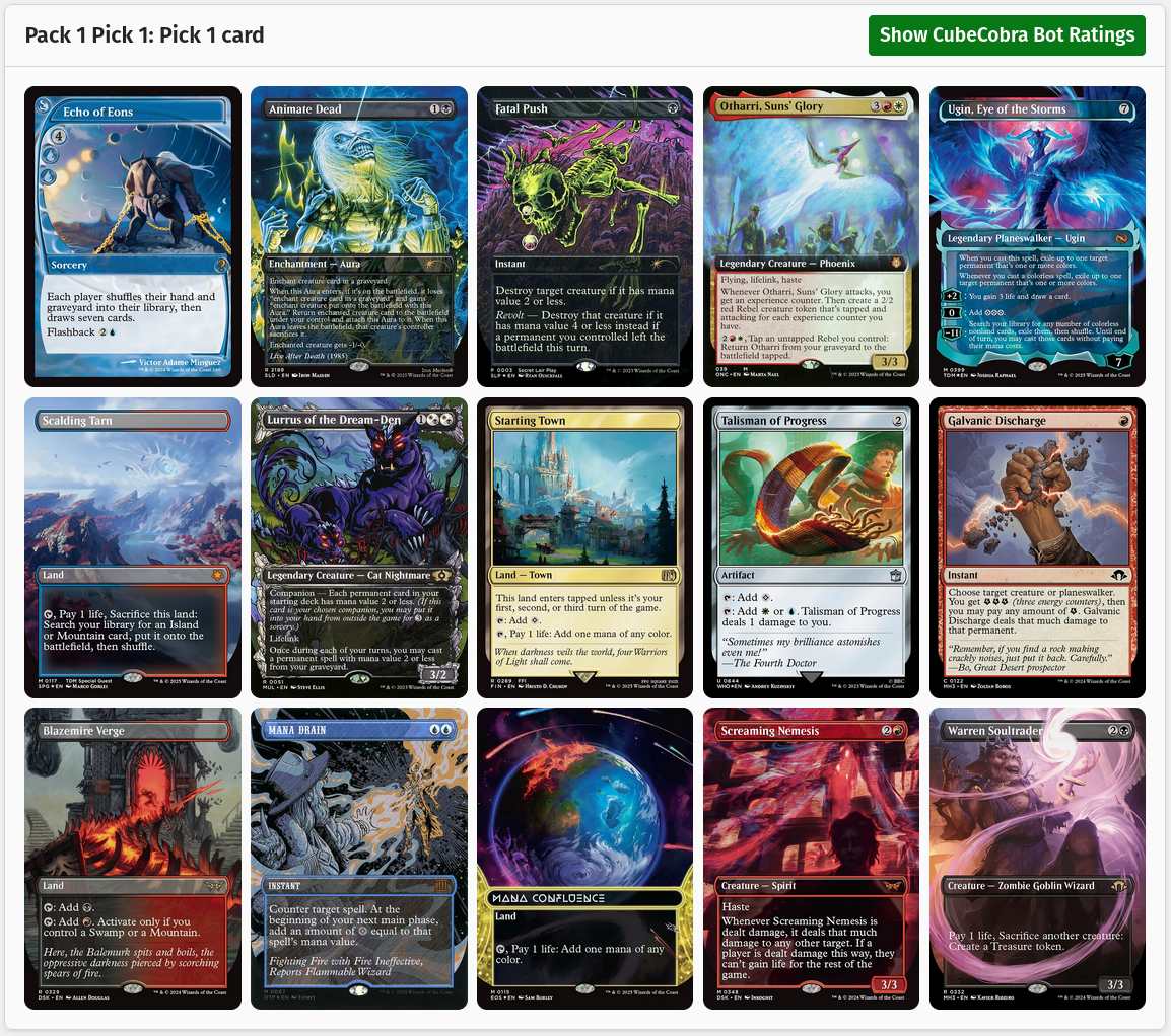 Despite this cube not being my own design, I have put my creative fingerprints on the aesthetics. To give you a feel for how I maintain my cube, here are some examples of packs you might open.